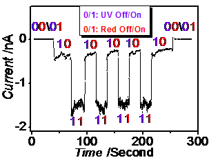 在此基础上,通过与秦志新、戴伦等教授合作,最近他们实现了基于ZnO 纳米线/GaN薄膜p-n结的快速紫外光探测功能器件。由于该器件光电响应的特性主要来自于p-n结,这大大降低了环境气氛对器件光电性能的影响,同时通过改善ZnO纳米线质量,实验中测量到紫外光响应上升时间约为20微秒,下降端迟豫时间约为219微秒,这个速度远高于基于ZnO纳米线光电导性质的紫外光探测器件。同时,利用器件优良的光伏效应,该p-n结在紫外光激发条件下成功地驱动了单根CdSe纳米线红光探测器工作,该联合器件在多波段光探测器、自驱动光探测器、以及光操纵逻辑门等方面有着潜在的应用价值。相关工作于12月15日发表在《先进材料》(Advanced Materials)的网络版上http://dx.doi.org/10.1002/adma.201003156 。