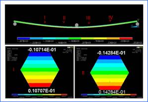 图4. ZnO微米线中的应变梯度效应:上. 具有六角多面体晶形、直径2.5um、长数百微米的ZnO微米线,及选择的8个CL光谱线扫描位置;中. 对应于上述8个不同应变梯度位置获得的系列CL光谱,黑色曲线代表在几何中性面上获得的CL光谱;下.中性面、位置V上A激子能量与应变梯度的线性关系(韩晓冰 等, Advanced Materials Vol.24, pp4707,2012)。