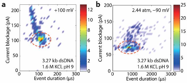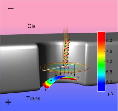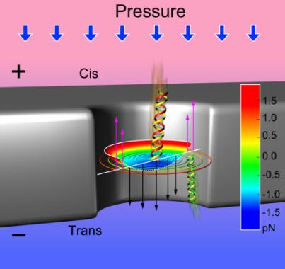 在以上工作基础上,课题组还系统研究了DNA穿孔时间随压强的变化依赖关系;压强和纳米孔大小对区分不同长度DNA分子的影响;建立了一整套完备的DNA在纳米孔中的受力模型,很好解释了实验结果 (Small, DOI: 10.1002/smll.201301263)。