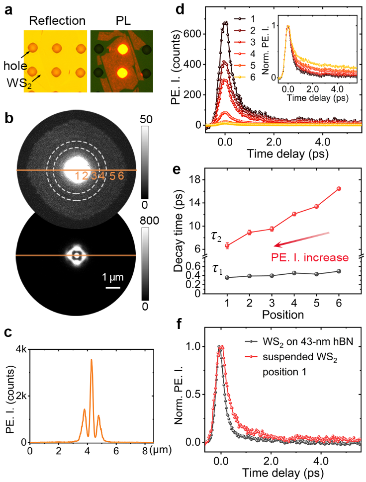 图3 悬空的单层WS2样品的时间分辨的PEEM测量。