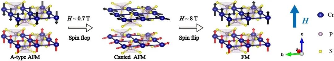 图2 CrPS­4在c轴磁场下磁结构的演变。