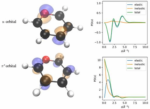 图2 x射线衍射和电子衍射下吡啶分子关于nл*的信号对比