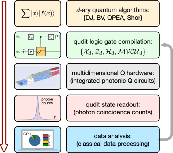 图1 至上而下的高维量子计算架构(从顶层需求到物理底层实现、从量子算法到量子门操作)