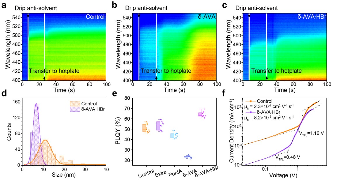 图二:双功能配体调控钙钛矿纳米晶结晶过程及性能