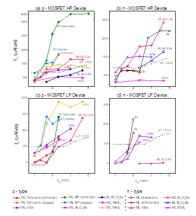 图1.典型二维材料晶体管的理论开态电流