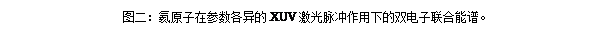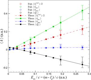 图一:理论预测的两个电子和离子所获得的线动量随光子能量的变化与实验测量的比较