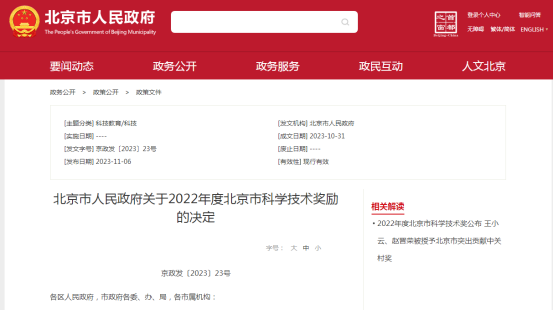 本次奖励是北京市政府为深入贯彻落实习近平新时代中国特色社会主义思想,认真学习贯彻党的二十大精神,坚定实施创新驱动发展战略,切实把创新作为引领发展的第一动力,加快建设北京国际科技创新中心,对为科学技术进步、科技创新中心建设、首都经济社会发展作出突出贡献的科技人员和组织给予的奖励。
