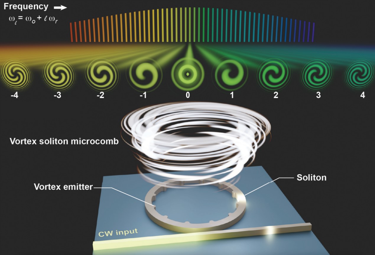 图1. 涡旋孤子微梳原理展示。